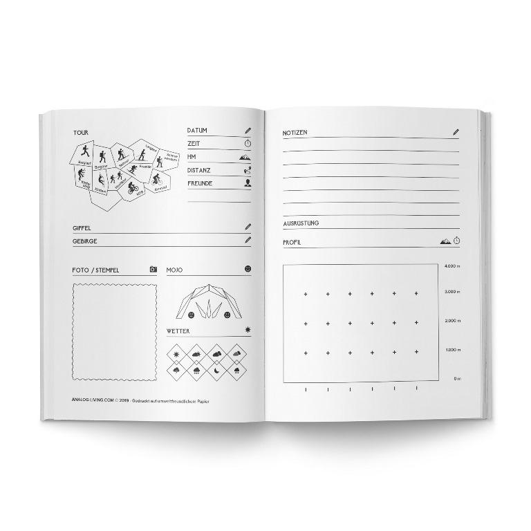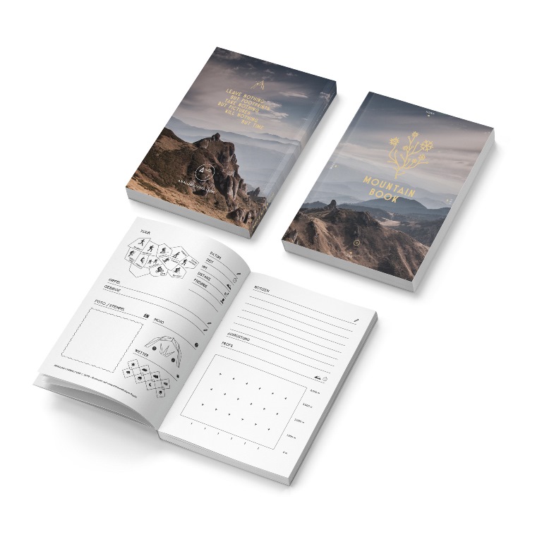 Im heutigen, hektischen Zeitalter ist es besonders wichtig, sich wieder Zeit für das Wesentliche zu nehmen. Raus in die Natur, auf die Berge dieser Welt! Dort hin, wo digitaler Empfang noch Mangelware ist. Das Mountain-Book begeistert inzwischen tausende von Bergfreunden. Halte die schönsten Momente analog fest und lasse die Tour Revue passieren!