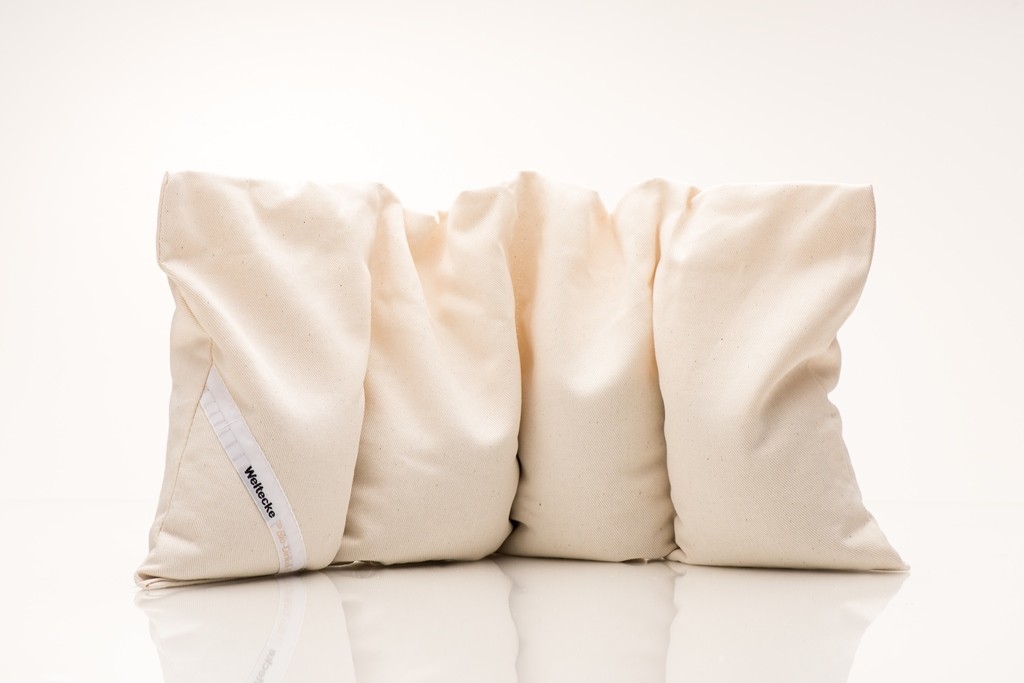 Die Füllung verteilt sich auf vier getrennte Kammern. Hierdurch verteilen sich die Körner, auch bei unterschiedlichsten Positionen des Kissens, immer auf die gesamte Fläche.