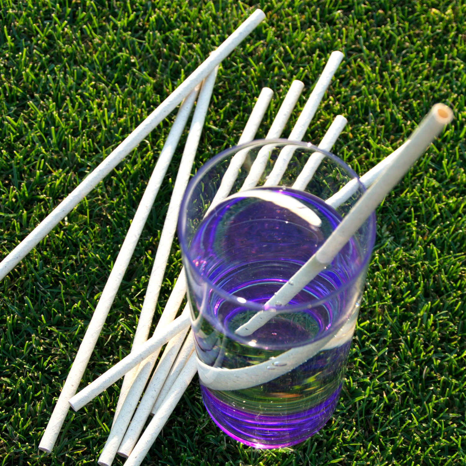 Graspapier-Trinkhalme - Die grüne Alternative. 30% aus getrocknetem Gras und zu ca. 70% aus Zellstoff. Das Gras stammt aus Ausgleichsflächen, die weder zur Lebensmittel- noch zur Futtermittelproduktion benötigt werden. In Deutschland geht man von einer wirtschaftlich nicht genutzten Fläche von über 7 Millionen Tonnen Gras aus. Die Zellulose (Papier) stammt aus nachhaltiger Forstwirtschaft und ist FSC-zertifiziert. Die Graspapier-Trinkhalme sind lebensmittelecht und selbstverständlich frei von Blei, Chlor und Weichmachern.