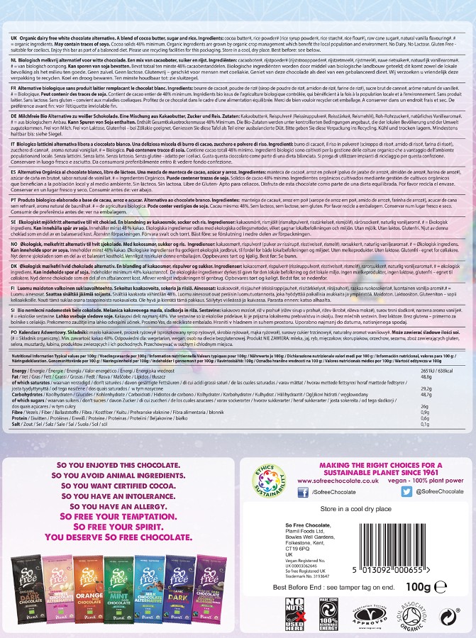 Dieser alternative, vegane Adventskalender mit zarter weißer Schokolade entfaltet den köstlichen Geschmack von weißer Schokolade mit der Cremigkeit von Milchschokolade.