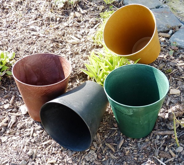 Dieser Eleganter Blumen- Übertopf aus Wiesengras-Kunststoff in Marmoroptik ist leicht und praktisch.