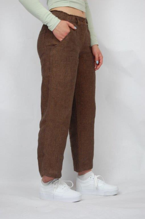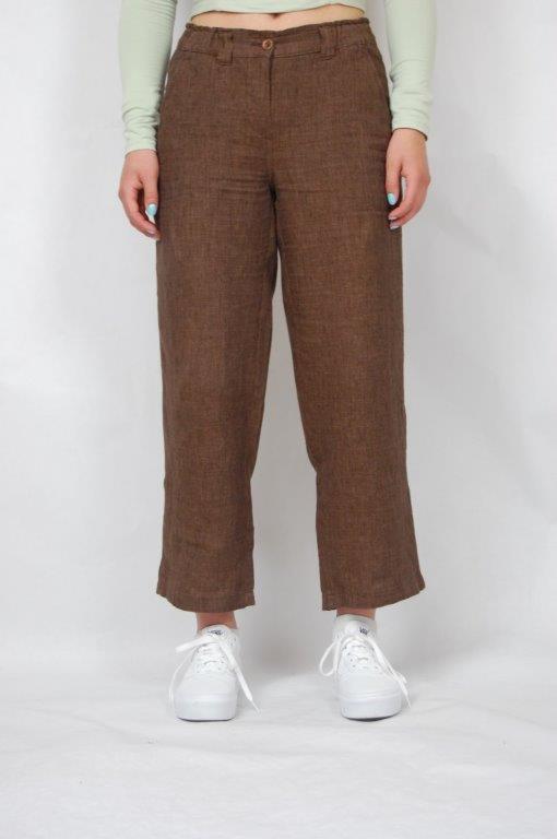 Stylische und bequeme 6/8 Hose aus 100% Leinen in Braun