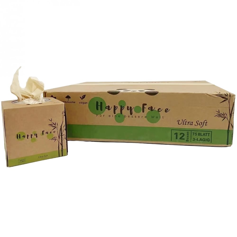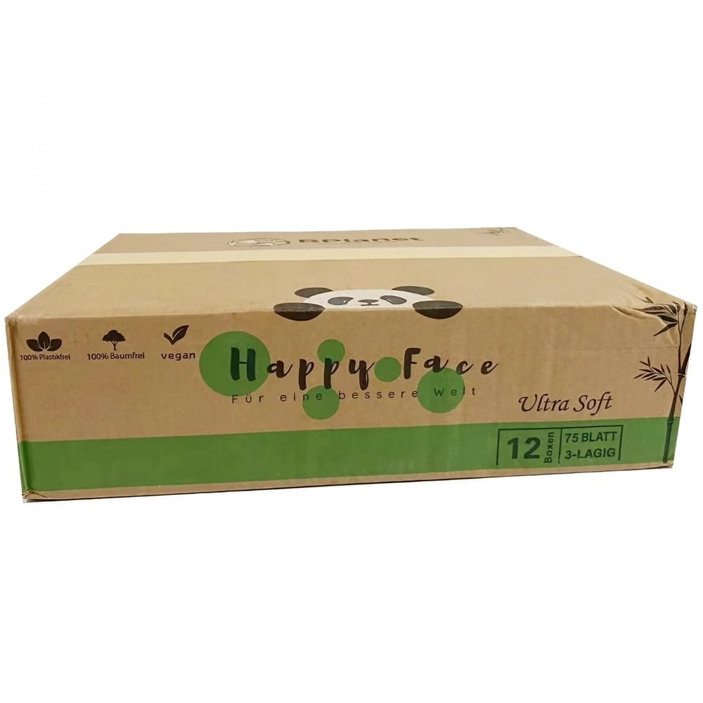 Erleben Sie die umweltfreundliche Innovation von BPlanet: 12 Boxen Bambus-Taschentücher, jeweils mit 75 Blatt, insgesamt 900 Taschentücher aus reinem Bambus. Die Taschentücher aus Bambus sind nicht nur super weich und unglaublich reißfest, sondern sie sind auch ein Beitrag zur Rettung der Wälder, da sie zu 100% aus dem schnell nachwachsenden Rohstoff Bambus hergestellt sind. Zudem sind sie vegan und tierversuchsfrei produziert und werden in umweltfreundlichem, recyceltem Karton verpackt. Jede Box enthält 75 Blätter der dreilagigen, Bambus-Taschentücher, die Ihnen sanfte Pflege. und Stärke bieten. Die nachhaltigen und umweltfreundlichen Bambus-Taschentücher von BPlanet Happy Face setzen auf Qualität und Umweltfreundlichkeit. Zudem sind sie frei von Plastik, Chemikalien, Bleichmitteln und Farbstoffen.