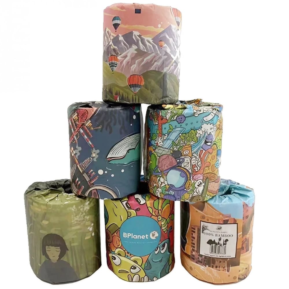 BPlanet 24 Bambus-Rollen Toilettenpapier Happy Poop