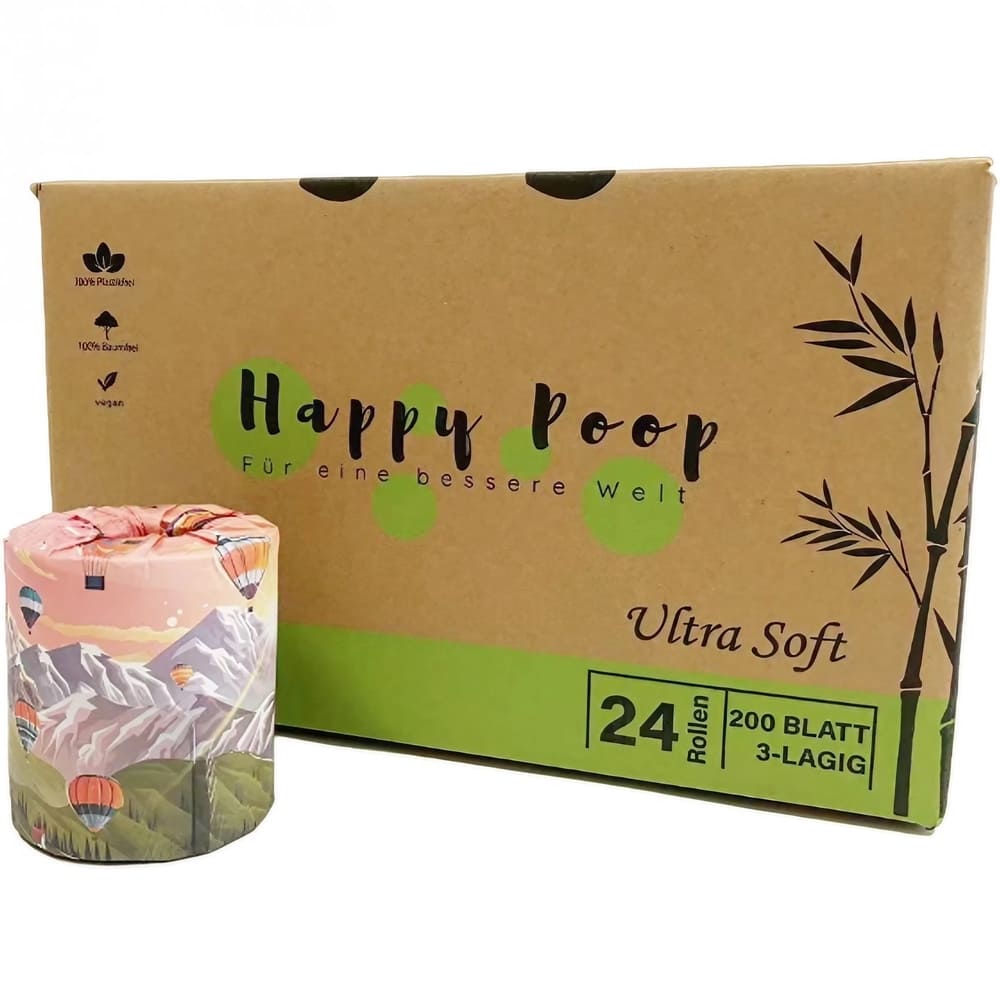 24 Bambus-Rollen Toilettenpapier Happy Poop