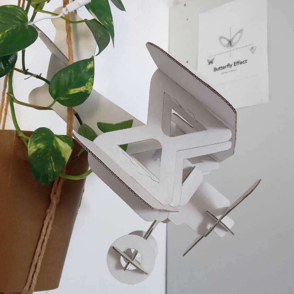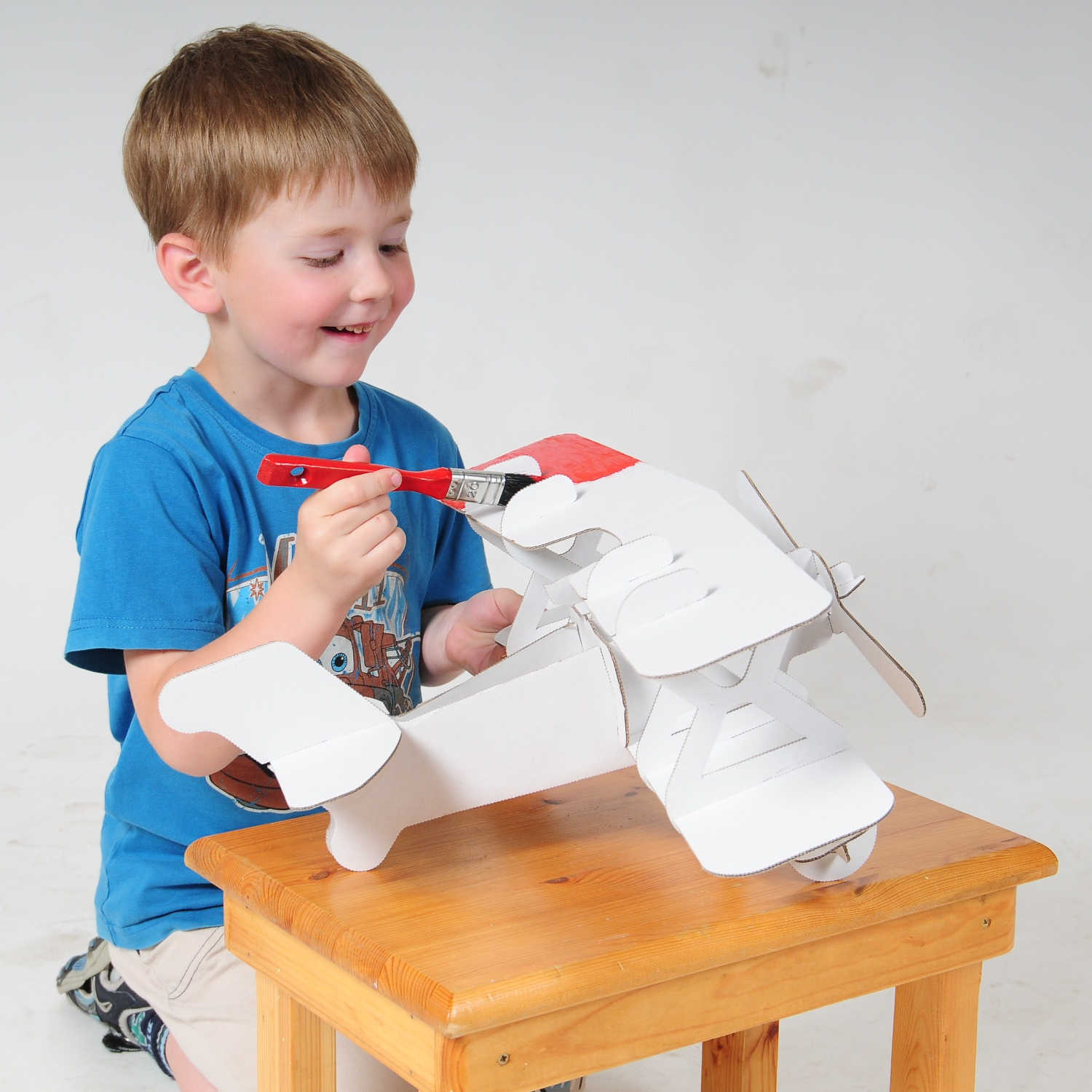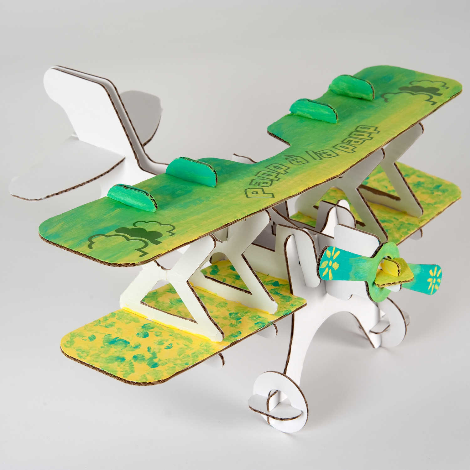Das Pappflugzeug animiert Kinder zum gleichzeitigen Spielen und Trainieren: