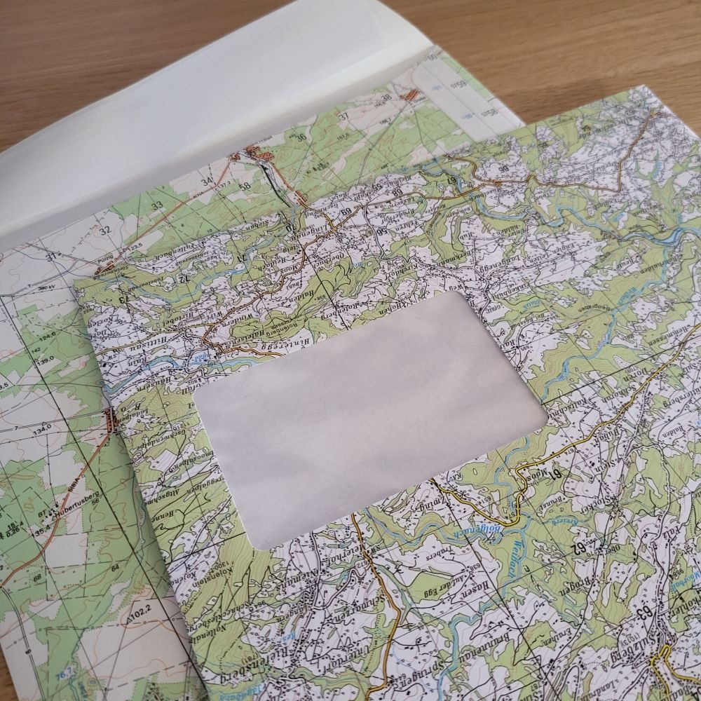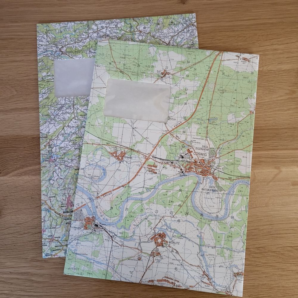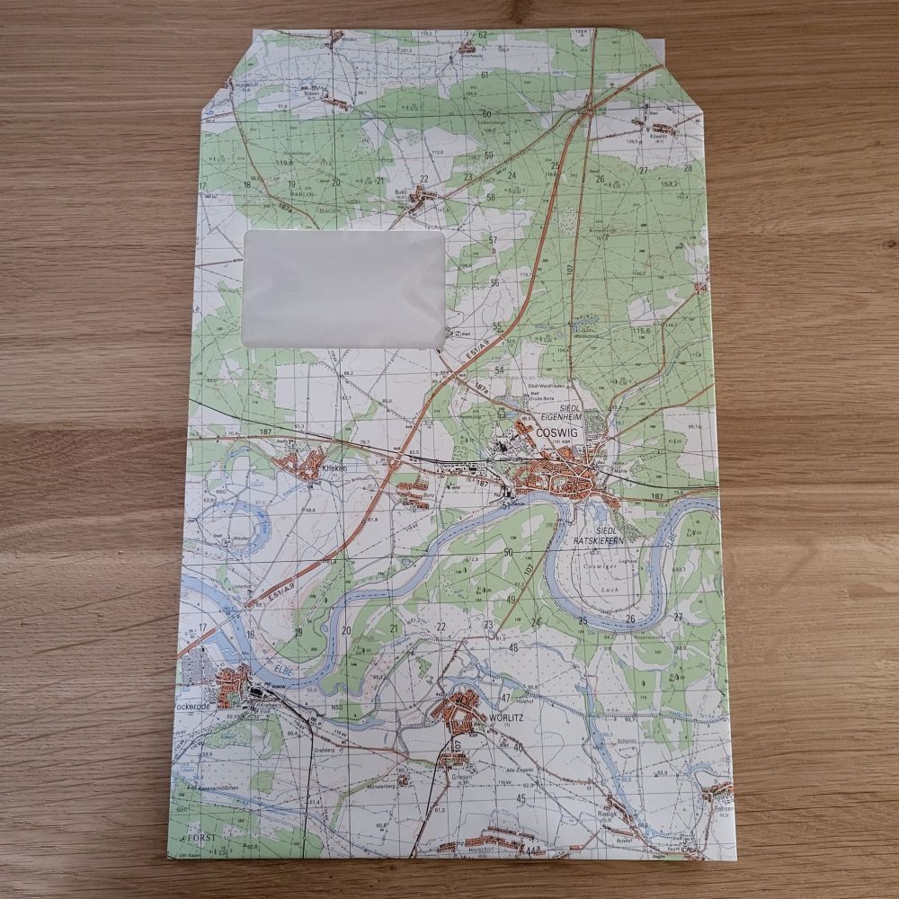 1 x Versandtaschen mit Sichtfenster und Klebestreifen aus Landkarten