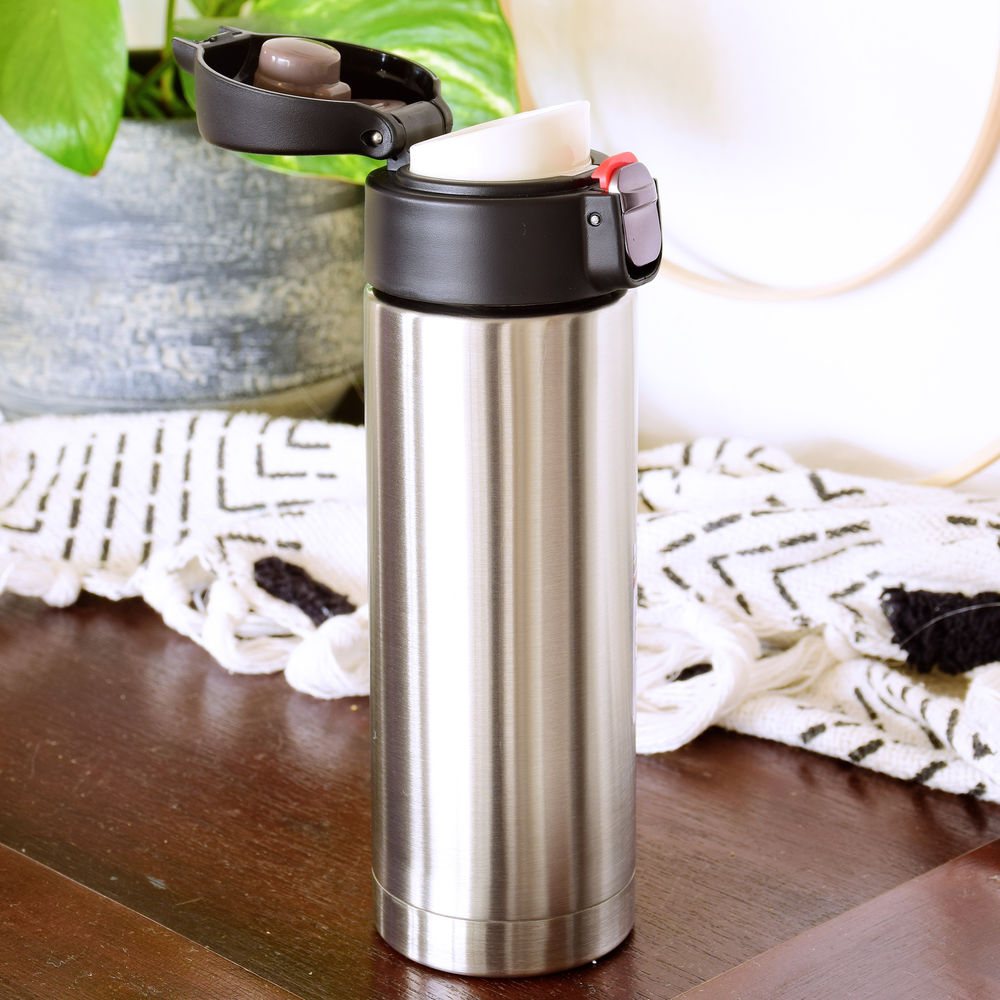 Edelstahl-Thermosbecher mit praktischem Einhandverschluss