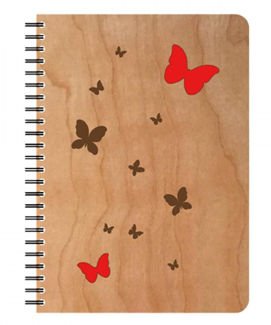 Echtholz Schmetterling Schreibblock mit Umschlag aus Kirschholz