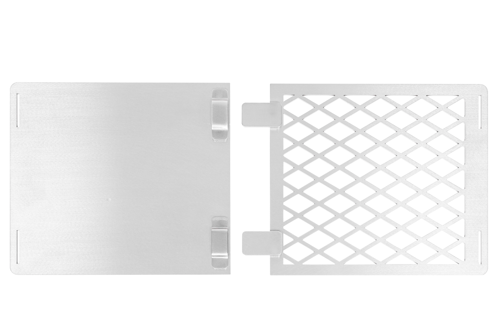 Mobiler, demontierbarer Grillrost mit 2 Grillzonen, gefertigt aus temperaturbeständigem Edelstahl.
