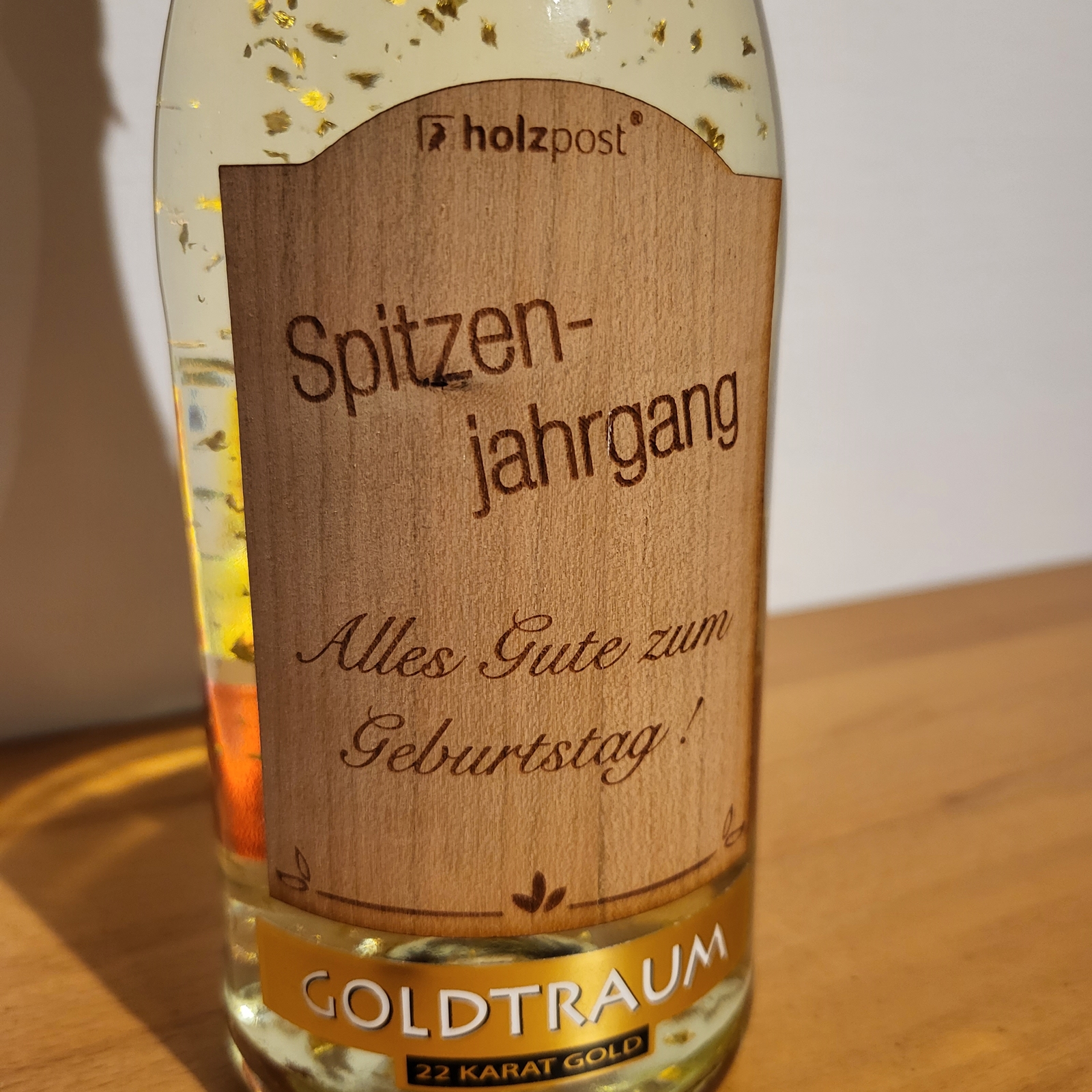 Dieses Flaschen-Etikett aus echtem Kirschbaumholz ist mit einer selbstklebenden Rückseite und passender, natürlicher Gravur ausgestattet. Das perfekte Geschenk für deine Liebsten!