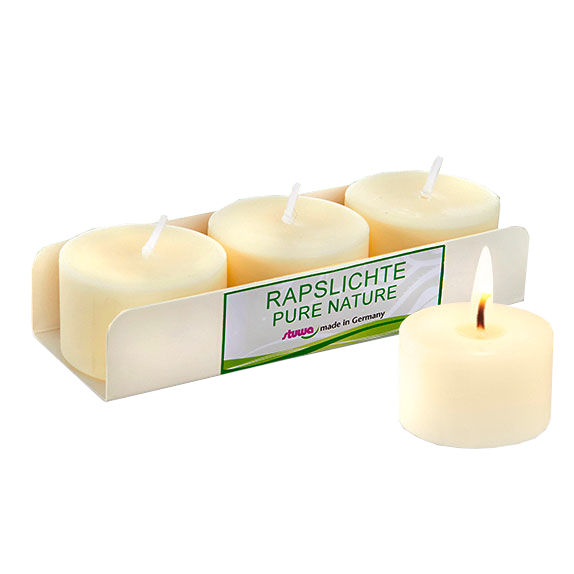 Die veganen Kerzen von Stuwa sind zu 100% aus Raps hergestellt. Für ein nachhaltiges Umweltbewusstsein!