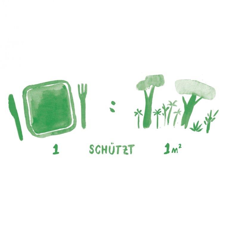 Pro verkauftem Teller wird zudem 1qm Regenwald geschützt. So wollen wir gemeinsam die Welt Teller für Teller ein kleines bisschen besser machen!