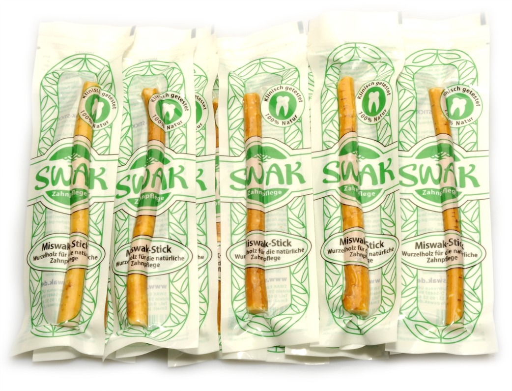Während der Zahnreinigung gibt das Holz seinen aromatischen Saft ab, der adstringierend und antibakteriell auf die Mundschleimhaut und mineralisierend auf den Zahnschmelz wirkt. Aus der Wurzel des Zahnbürstenbaumes "salvadora persica"!
