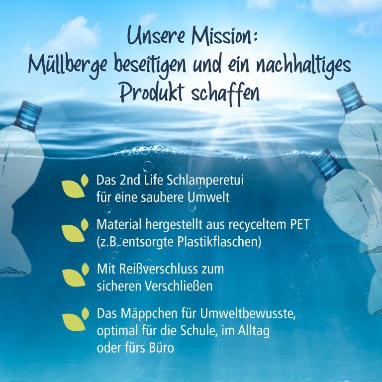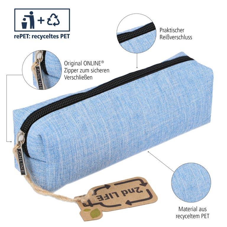 ONLINE Schlamperetui 2nd Life aus recyceltem PET-Kunststoff. Schlamperetui aus recyceltem PET-Kunststoff, mit Reißverschluss, Allrounder im Alltag, für Schule und Zuhause.Entsorgten PET-Flaschen, Trinkbechern etc. ein zweites Leben schenken und so die Umwelt schützen: Dafür stehen die 2nd LIFE PET-Produkte von ONLINE. Denn das Rohmaterial wird aus dem Recyclingprozess entsorgter PET-Einwegflaschen und Trinkbechern gewonnen. Das bedeutet: Für eine saubere Umwelt – Müllberge vermeiden.