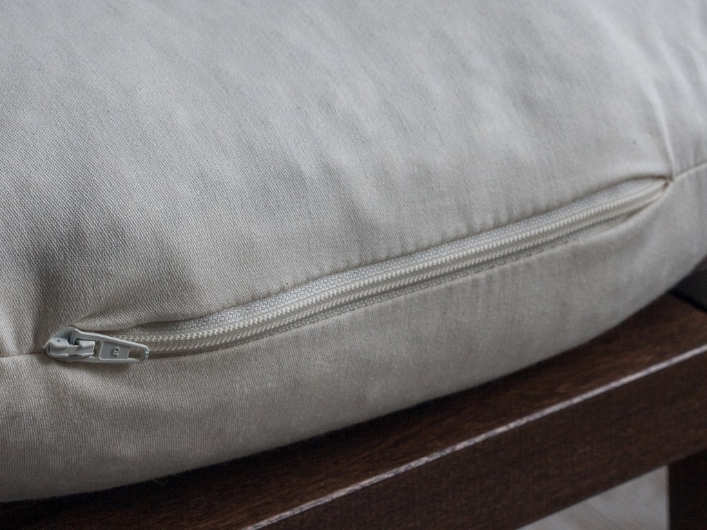Die Hülle besteht aus einem anschmiegsamen Köper aus Bio-Baumwolle und ist bis 60° C waschbar. Das Gewebe wurde mit Dampf vorbehandelt und läuft auch bei 95° C nur geringfügig ein.