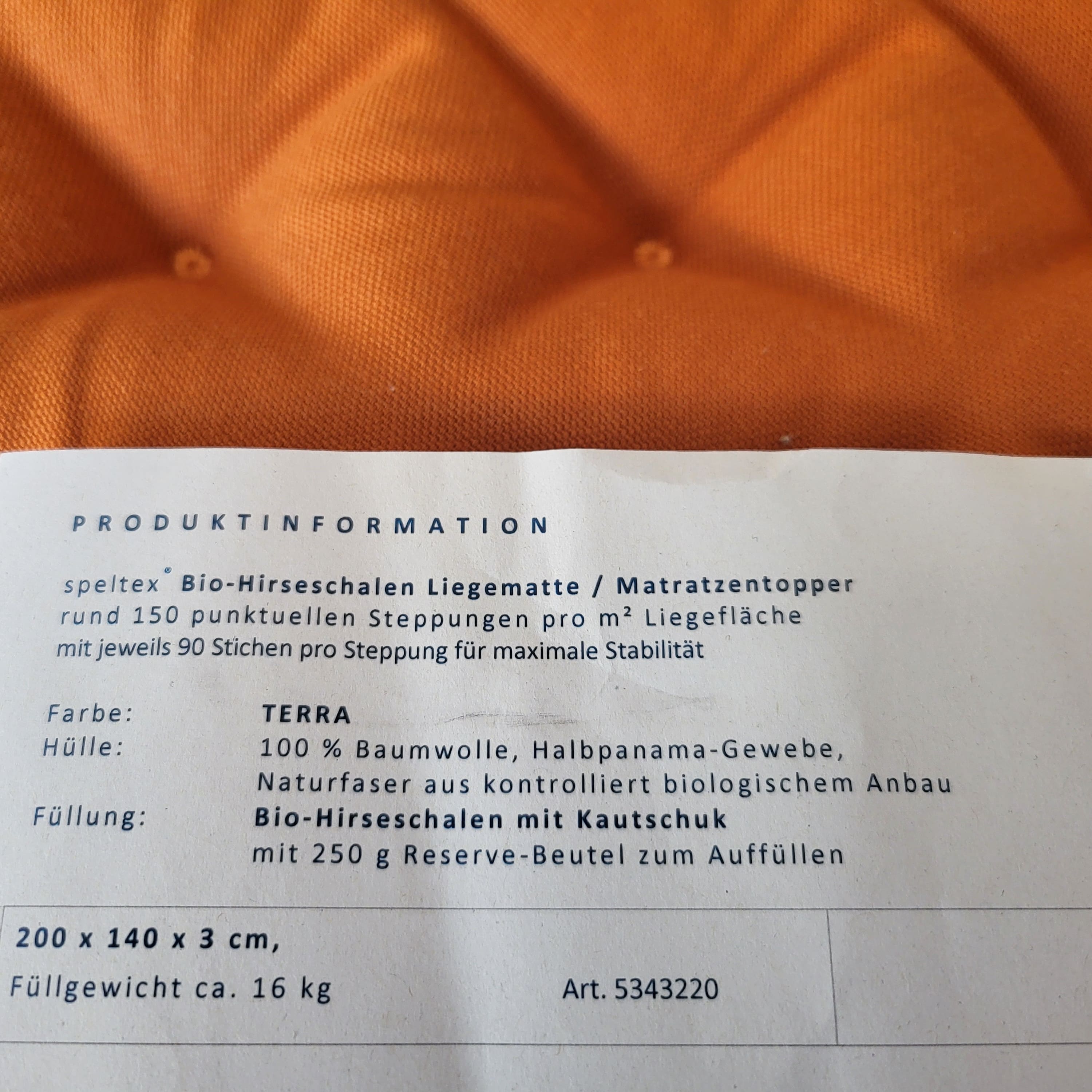 1 x Speltex Bio Punktstepp-Matratzentopper 200x140 cm in Farbe Terra