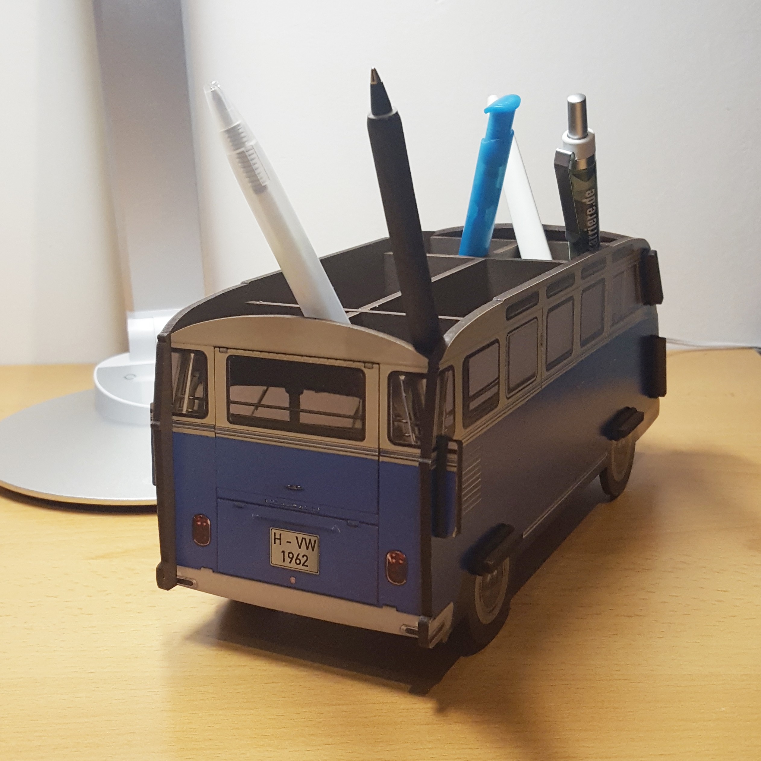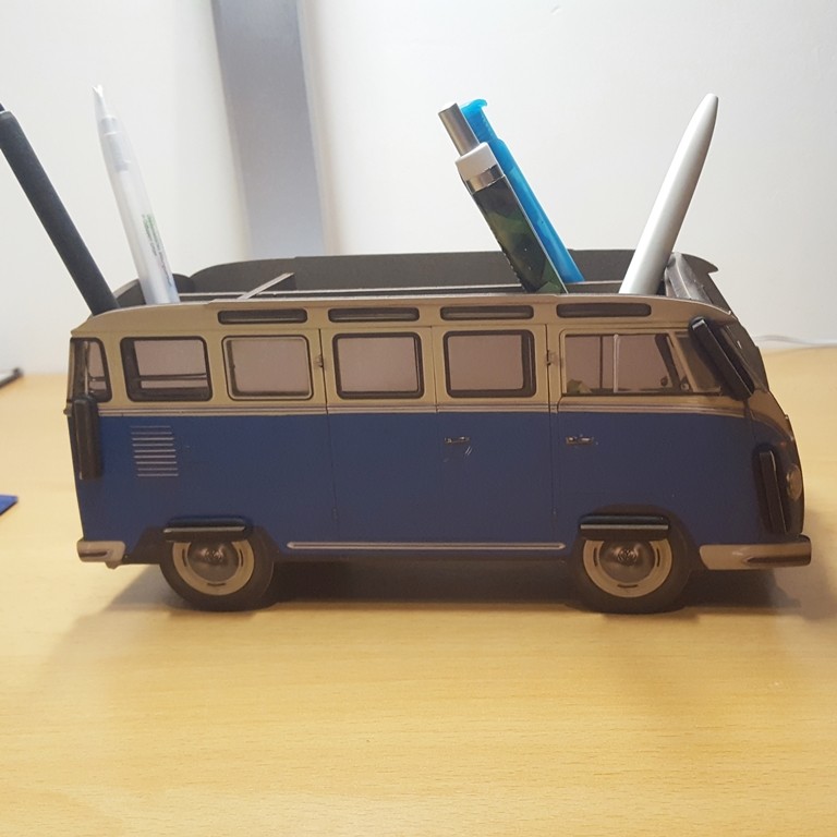 Kultautos räumen den Schreibtisch auf. Der Klassiker VW T1 Bulli geht auf Ihrem Schreibtisch auf große Fahrt!