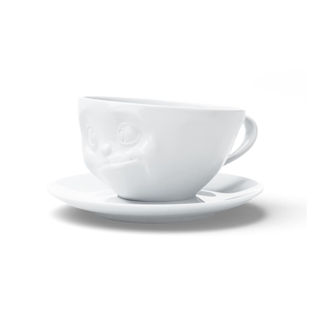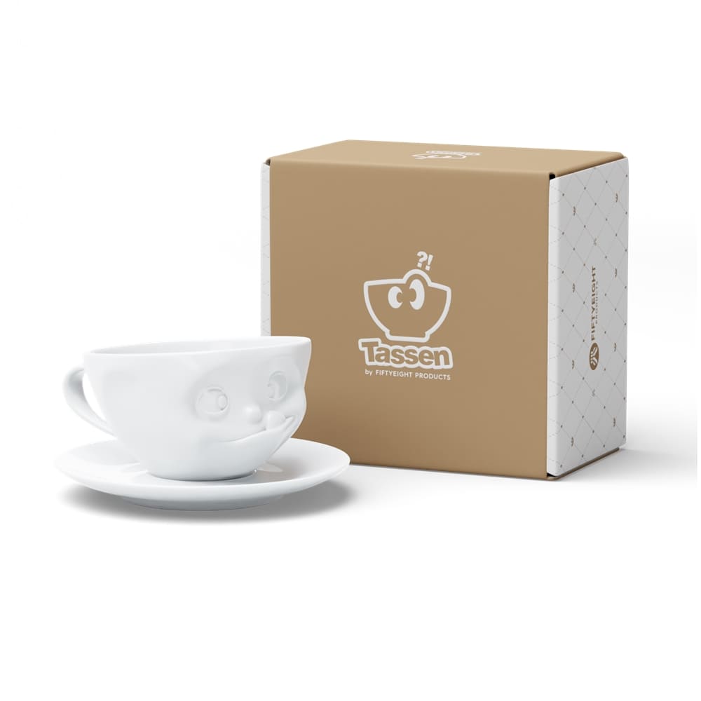 Diese Tasse "Lecker" wird jedem ein Schmunzeln auf das Gesicht zaubern. Genießen Sie Ihren Kaffee, Milchkaffee, Kakao,... doch in stilvoller Weise aus dieser zauberhaften Tasse mit Henkel und passendem Unterteller. Das entzückende Lächeln der Tasse verleiht jedem Kaffeetisch eine spielerische Note und sollte in keiner Küche fehlen. Die liebevoll gestaltete Tasse aus hochwertigem weißem Hartporzellan in Hotelqualität fügt sich harmonisch in jedes Kaffeeservice ein und dient auch als verspielte Tischdekoration. Ein wahrer Blickfang, der nicht nur Ihren Gaumen, sondern auch Ihre Sinne erfreut.