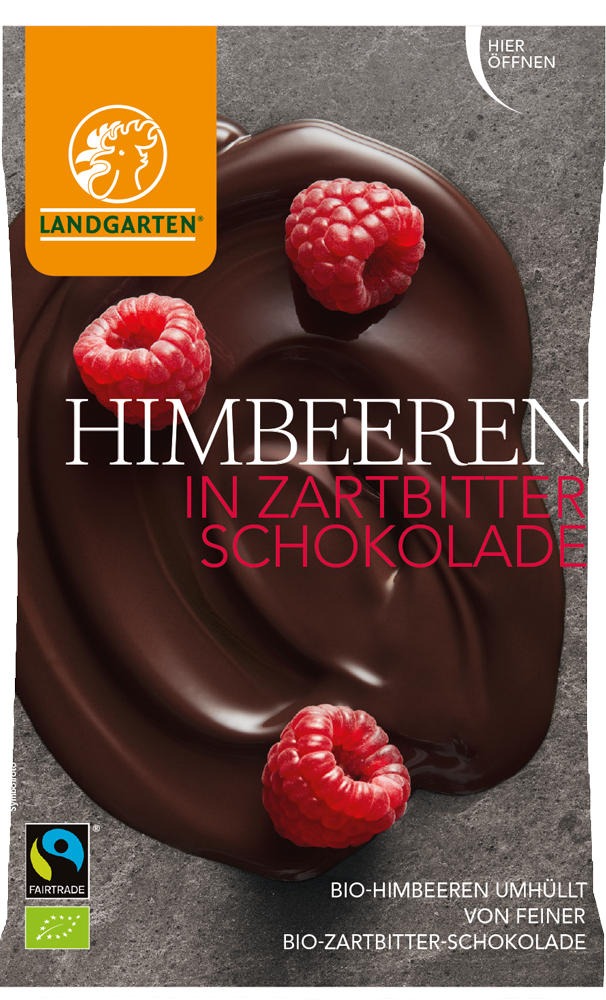 Bio Himbeeren in Zartbitterschokolade von Landgarten