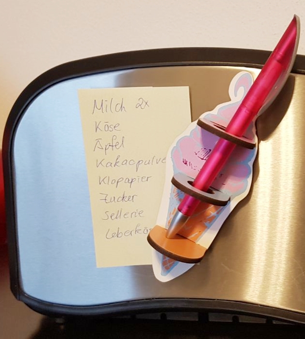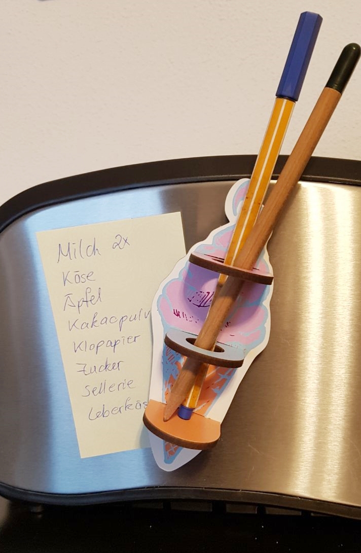 Geistesblitze und Einkaufslisten können endlich sofort niedergeschrieben werden, denn mit dem Magnet-Stiftehalter hat man immer einen Stift zur Hand, wenn man ihn benötigt. Der Stiftehalter aus dem WERKHAUS-Stecksystem wird zusammengesteckt und hält mithilfe der Magnete an Kühlschränken, Magnetwänden und vielen anderen eisenhaltigen Metallen.